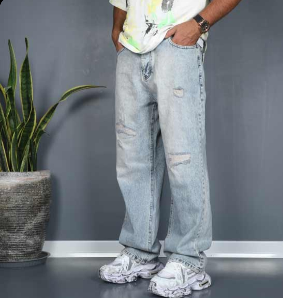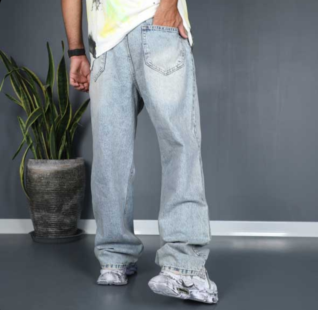 شلوار بگ آبی کثیف زاپدار